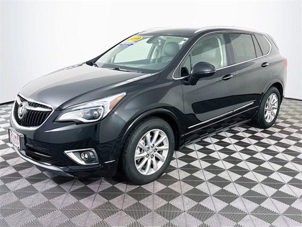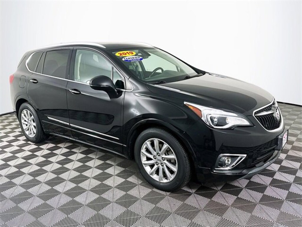 Preferred Equipment Group 1SL, 18 10-Spoke Polished Aluminum Wheels, 3.50 Final Drive Axle Ratio, 4-Wheel Disc Brakes, 6 Speakers, 6-Speaker Audio System Feature, ABS brakes, Air Conditioning, All-Weather Floor Liners (LPO), Alloy wheels, AM/FM radio: SiriusXM, Apple CarPlay/Android Auto, Auto-dimming door mirrors, Auto-dimming Rear-View mirror, Automatic temperature control, Brake assist, Bumpers: body-color, Compass, Delay-off headlights, Driver 8-Way Power Seat Adjuster, Driver door bin, Driver vanity mirror, Dual front impact airbags, Dual front side impact airbags, Electronic Stability Control, Emergency communication system: OnStar and Buick connected services capable, Exterior Parking Camera Rear, Four wheel independent suspension, Front anti-roll bar, Front Bucket Seats, Front Center Armrest, Front dual zone A/C, Front fog lights, Front Passenger 8-Way Power Seat Adjuster, Front reading lights, Fully automatic headlights, Garage door transmitter, Heated door mirrors, Heated Driver & Front Passenger Seats, Heated front seats, Heated rear seats, Heated steering wheel, High-Intensity Discharge Headlights, Illuminated entry, Knee airbag, Leather Shift Knob, Low tire pressure warning, Memory seat, Occupant sensing airbag, Outside temperature display, Overhead airbag, Overhead console, Panic alarm, Passenger door bin, Passenger vanity mirror, Perforated Leather-Appointed Seat Trim, Power door mirrors, Power driver seat, Power Liftgate, Power Panoramic Tilt-Sliding Moonroof, Power passenger seat, Power steering, Power windows, Radio data system, Radio: Buick Infotainment System AM/FM Stereo, Radio: Buick Infotainment System AM/FM w/Nav, Rear air conditioning, Rear anti-roll bar, Rear reading lights, Rear seat center armrest, Rear side impact airbag, Rear window defroster, Rear window wiper, Remote keyless entry, Roof rack: rails only, Security system, SiriusXM Radio, Speed control, Speed-sensing steering, Split folding rear seat, Spoiler, Steering wheel mounted audio controls, Tachometer, Telescoping steering wheel, Tilt steering wheel, Traction control, Trip computer, Turn signal indicator mirrors, and Variably intermittent wipers. Clean CARFAX. CARFAX One-Owner. Ebony Twilight Metallic Buick 2019 Envision Essence