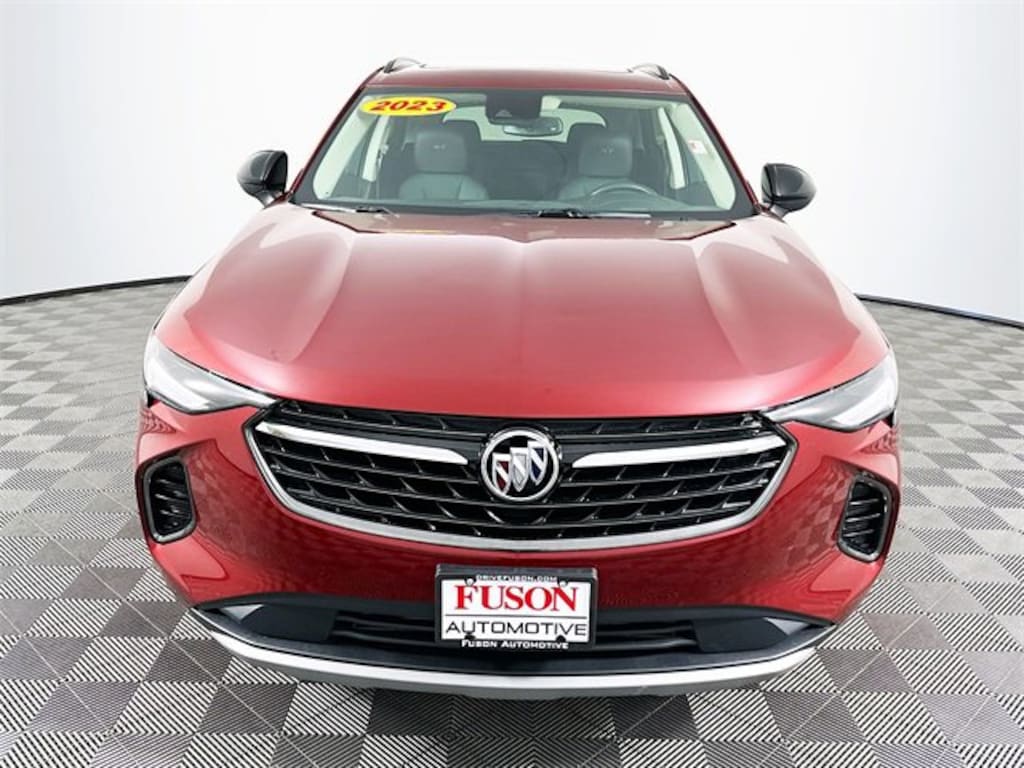 Preferred Equipment Group 1SL, Sport Touring Package (Black Roof Rails, Body-Color Door Handles, Carpeted Front & Rear Floor Mats, Lower Trim/Wheel Arch Moldings, Rear Cargo Compartment Cover, Sport Alloy Pedals, and Wheels: 20 Aluminum w/Dark Finish), 3.47 Final Drive Axle Ratio, 4-Wheel Disc Brakes, 7 Speakers, 7-Speaker Audio System Feature w/Amplifier, 8-Way Power Driver Seat Adjuster, ABS brakes, Air Conditioning, Alloy wheels, AM/FM radio: SiriusXM, Apple CarPlay/Android Auto, Auto High-beam Headlights, Auto-dimming door mirrors, Auto-dimming Rear-View mirror, Automatic Emergency Braking, Automatic temperature control, Brake assist, Bumpers: body-color, Compass, Delay-off headlights, Driver door bin, Driver vanity mirror, Dual front impact airbags, Dual front side impact airbags, Electronic Stability Control, Emergency communication system: OnStar and Buick connected services capable, Following Distance Indicator, Forward Collision Alert, Four wheel independent suspension, Front anti-roll bar, Front Bin Center Console USB Ports, Front Bucket Seats, Front Center Armrest, Front dual zone A/C, Front Passenger 8-Way Power Seat Adjuster, Front Pedestrian Braking, Front reading lights, Fully automatic headlights, Heated door mirrors, Heated Driver & Front Passenger Seats, Heated front seats, Heated steering wheel, Illuminated entry, IntelliBeam Headlamp Control w/Auto High Beam, Knee airbag, Lane Keep Assist w/Lane Departure Warning, Low tire pressure warning, Memory seat, Occupant sensing airbag, Outside temperature display, Overhead airbag, Overhead console, Panic alarm, Passenger door bin, Passenger vanity mirror, Perforated Leather-Appointed Seat Trim, Power door mirrors, Power driver seat, Power Liftgate, Power Panoramic Tilt-Sliding Moonroof, Power passenger seat, Power steering, Power windows, Premium audio system: Buick Infotainment System, Radio data system, Radio: Buick Infotainment System AM/FM Stereo, Rear anti-roll bar, Rear reading lights, Rear seat center armrest, Rear window defroster, Rear window wiper, Remote keyless entry, Security system, SiriusXM Radio, Speed control, Split folding rear seat, Spoiler, Steering wheel mounted audio controls, Telescoping steering wheel, Tilt steering wheel, Traction control, Trip computer, USB Charging-Only Ports, Variably intermittent wipers, Wheels: 18 Machined Aluminum w/Light Silver Met, and Wireless Apple CarPlay/Wireless Android Auto. Clean CARFAX. CARFAX One-Owner. Cinnabar Metallic Buick 2023 Envision Essence