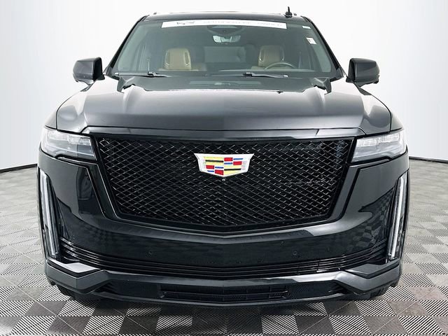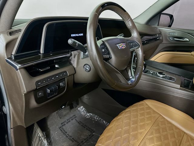 Preferred Equipment Group 1SC (Adaptive Cruise Control, AKG Studio 19-Speaker Audio System, Automatic Seat Belt Tightening, Automatic Stop/Start, Body-Color Door Handles, Door Lock & Latch Shields, Electronic Limited-Slip Differential, Enhanced Automatic Emergency Braking, Enhanced Automatic Parking Assist, Glass Breakage Sensor, Hitch Guidance w/Hitch View, Integrated Trailer Brake Controller, Power Panoramic Tilt-Sliding Sunroof, Rear Camera Mirror, Rear Camera Mirror Washer, Rear Cross Traffic Alert, Reconfigurable Full-Color Head-Up Display, Reverse Automatic Braking, Running Board Assist Steps, Smart Trailer Integration Indicator, Start/Stop System Disable Button, Theft-Deterrent Alarm System, Trailer Side Blind Zone Alert, Vehicle Inclination Sensor, and Vehicle Interior Movement Sensor), Touring Package (Air Ride Adaptive Suspension, Illuminating Front & Rear Sill Plates, and Soft Closing Front & Rear Doors), 4WD, Brandy With Very Dark Atmosphere Accents Leather, 16.9 Diagonal OLED Infotainment Screen, 19 Speakers, 2-Presets Memory For Driver Seat Adjuster, 3.23 Axle Ratio, 3rd row seats: split-bench, 4-Wheel Disc Brakes, 8-Way Power Driver Seat Adjuster, 8-Way Power Front Passenger Seat Adjuster, ABS brakes, Adaptive suspension, Air Conditioning, Alloy wheels, AM/FM radio: SiriusXM with 360L, Apple CarPlay/Android Auto, Audio memory, Auto High-beam Headlights, Auto tilt-away steering wheel, Auto-dimming door mirrors, Auto-dimming Rear-View mirror, Automatic temperature control, Brake assist, Bumpers: body-color, Compass, Delay-off headlights, Driver door bin, Driver vanity mirror, Dual front impact airbags, Dual front side impact airbags, Electronic Stability Control, Emergency communication system: OnStar and Cadillac connected services capable, Four wheel independent suspension, Front anti-roll bar, Front Bucket Seats, Front Center Armrest w/Storage, Front dual zone A/C, Front reading lights, Fully automatic headlights, Garage door transmitter, HD Radio, Heads-Up Display, Heated & Ventilated Driver & Front Passenger Seats, Heated door mirrors, Heated Driver & Front Passenger Seats, Heated front seats, Heated rear seats, Heated steering wheel, Illuminated entry, Leather Seating Surfaces w/Precision Perf Inserts, Leather steering wheel, Low tire pressure warning, Magnetic Ride Control Suspension, Memory seat, Navigation System, Not Equipped w/4-Way Driver & Fr Pass Pwr Lumbar, Not Equipped w/Steering Column Lock, Occupant sensing airbag, Outside temperature display, Overhead airbag, Overhead console, Panic alarm, Passenger door bin, Passenger vanity mirror, Power door mirrors, Power driver seat, Power Liftgate, Power moonroof, Power passenger seat, Power steering, Power windows, Radio data system, Radio: AM/FM/SiriusXM w/Navigation, Rain sensing wipers, Rear air conditioning, Rear anti-roll bar, Rear reading lights, Rear window defroster, Rear window wiper, Remote keyless entry, Roof rack: rails only, Security system, SiriusXM w/360L, Speed control, Split folding rear seat, Spoiler, Steering wheel memory, Steering wheel mounted audio controls, Super Cruise, Tachometer, Teen Driver, Telescoping steering wheel, Tilt steering wheel, Traction control, Trip computer, Turn signal indicator mirrors, Variably intermittent wipers, Ventilated front seats, Voltmeter, Wheels: 22 12-Spoke Polished Alloy, and Wireless Apple CarPlay/Wireless Android Auto. Clean CARFAX. CARFAX One-Owner. Black Raven Cadillac 2022 Escalade Sport