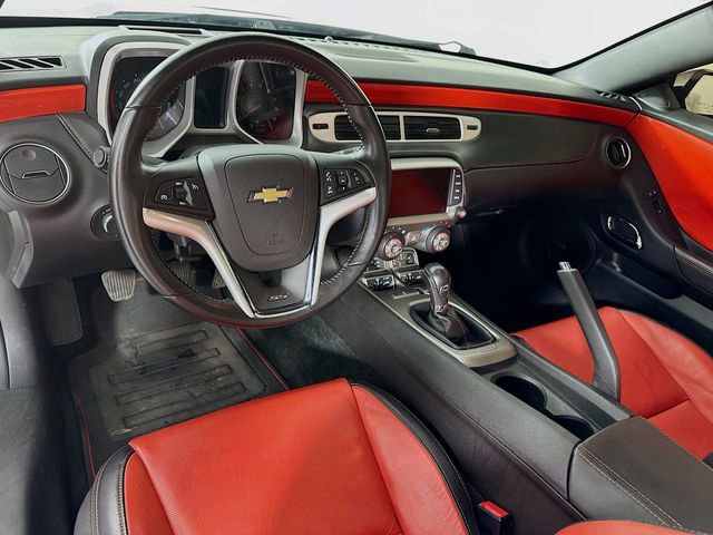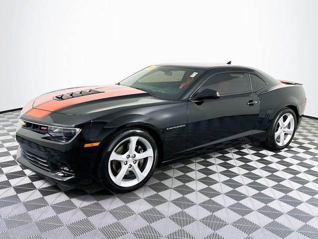 Inferno Orange Interior Accent Trim Package, Orange Rally Stripe Package, Preferred Equipment Group 2SS (2 Front Cup Holders, 3-Spoke Leather-Wrapped Steering Wheel, 4-Wheel Antilock 4-Wheel Disc Brakes, Analog Instrumentation, Auxiliary Multi-Function Gauges, Boston Acoustics Premium 9-Speaker Audio System, Carpeted Front Floor Mats, Color Display Driver Information Center, Electric Rear-Window Defogger, Electronic Cruise Control, Head-Up Display, Heated Driver & Front Passenger Seats, LATCH System, Leather-Wrapped Shift Knob, Maintenance-Free Battery, Manual Rake & Telescopic Steering Column, OnStar 6 Months Directions & Connections Plan, Power Programmable Door Locks, Remote Keyless Entry, SiriusXM Satellite Radio, StabiliTrak, Stainless-Steel Dual-Outlet Exhaust, Steering Wheel Mounted Audio Controls, Tire Sealant & Inflator Kit, Universal Home Remote, and USB Port Audio System Feature), RS Package (Body-Color Roof Ditch Molding, High-Intensity Discharge Headlamps, and Separate Daytime Running Lamps), 20 x 8 Front & 20 x 9 Rear Aluminum Wheels, 4-Wheel Disc Brakes, 6-Way Power Driver Adjuster w/Power Recline, 6-Way Power Fr Passenger Adjuster w/Power Recline, 9 Speakers, ABS brakes, Air Conditioning, Alloy wheels, AM/FM radio: SiriusXM, Auto-dimming door mirrors, Auto-dimming Rear-View mirror, Brake assist, Bumpers: body-color, Cargo Net, Compass, Delay-off headlights, Driver door bin, Driver vanity mirror, Dual front impact airbags, Dual front side impact airbags, Dual Mode Performance Exhaust, Electronic Stability Control, Emergency communication system: OnStar Directions & Connections, Exterior Parking Camera Rear, Four wheel independent suspension, Front anti-roll bar, Front Bucket Seats, Front Center Armrest, Front fog lights, Front Leather Seating Surfaces, Front reading lights, Front Sport Bucket Seats, Fully automatic headlights, Garage door transmitter, Heads-Up Display, Heated door mirrors, Heated front seats, Illuminated entry, Leather Shift Knob, Low tire pressure warning, Occupant sensing airbag, Outside temperature display, Overhead airbag, Panic alarm, Passenger door bin, Passenger vanity mirror, Performance Short-Throw Shifter, Power door mirrors, Power driver seat, Power passenger seat, Power steering, Power Sunroof w/Express-Open & Venting, Power windows, Premium audio system: Chevrolet MyLink, Premium Carpeted Floor Mats, Radio data system, Radio: AM/FM Stereo w/Color Touch, Rear anti-roll bar, Rear Parking Sensors, Rear Spoiler, Rear window defroster, Remote keyless entry, Security system, Speed control, Speed-sensing steering, Spoiler, Steering wheel mounted audio controls, Tachometer, Telescoping steering wheel, Tilt steering wheel, Traction control, Trip computer, Variably intermittent wipers, Voltmeter, and Wheel Lock Kit (LPO) Black Chevrolet 2015 Camaro SS 2SS