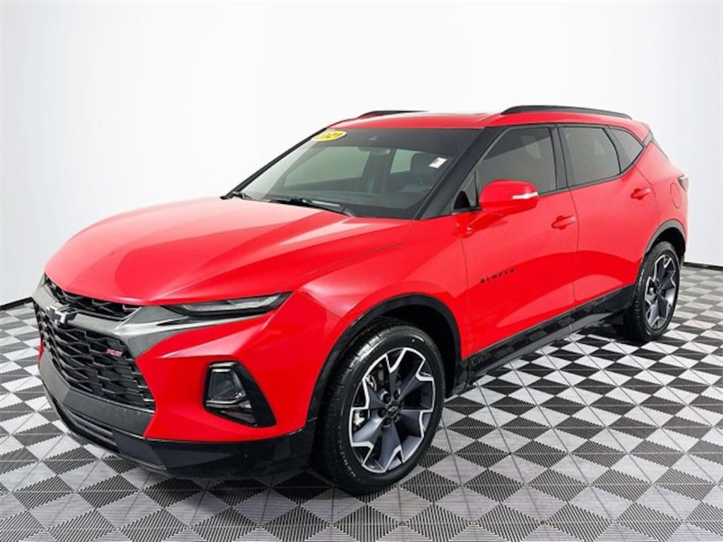 Enhanced Convenience Package (Heated Rear Outboard Seating Positions, Memory Settings For Driver Seat & Exterior Mirrors, Power Tilt & Telescoping Steering Column, and Ventilated Driver & Front Passenger Seats), Preferred Equipment Group 1RS, 3.49 Final Drive Axle Ratio, 4-Wheel Disc Brakes, 6 Speakers, 6-Speaker Audio System Feature, 6-Way Power Front Passenger Seat Adjuster, ABS brakes, Air Conditioning, Alloy wheels, AM/FM radio: SiriusXM, Apple CarPlay/Android Auto, Auto High-beam Headlights, Auto-dimming door mirrors, Auto-dimming Rear-View mirror, Automatic temperature control, Black Lug Nut & Wheel Lock Kit (LPO), Brake assist, Bumpers: body-color, Child-Seat-Sensing Airbag, Compass, Delay-off headlights, Driver door bin, Driver vanity mirror, Dual front impact airbags, Dual front side impact airbags, Electronic Stability Control, Emergency communication system: OnStar and Chevrolet connected services capable, Exterior Parking Camera Rear, Four wheel independent suspension, Front anti-roll bar, Front Bucket Seats, Front Center Armrest, Front dual zone A/C, Front reading lights, Fully automatic headlights, Garage door transmitter, Heated door mirrors, Heated Driver & Front Passenger Seats, Heated front seats, Heated steering wheel, High-Intensity Discharge Headlights, Illuminated entry, Knee airbag, Leather Shift Knob, Low tire pressure warning, Navigation System, Occupant sensing airbag, Outside temperature display, Overhead airbag, Overhead console, Panic alarm, Passenger door bin, Passenger vanity mirror, Perforated Leather-Appointed Seat Trim, Power door mirrors, Power driver seat, Power Liftgate, Power Panoramic Tilt-Sliding Sunroof, Power passenger seat, Power steering, Power windows, Radio data system, Radio: Chevrolet Infotainment 3 Plus System, Rear anti-roll bar, Rear reading lights, Rear seat center armrest, Rear window defroster, Rear window wiper, Remote keyless entry, Ride & Handling Suspension, Security system, SiriusXM w/360L, Speed control, Speed-sensing steering, Split folding rear seat, Spoiler, Steering wheel mounted audio controls, Tachometer, Telescoping steering wheel, Tilt steering wheel, Traction control, Trip computer, Turn signal indicator mirrors, Variably intermittent wipers, Voltmeter, and Wheels: 20 Dark Android Machined-Face Aluminum. Clean CARFAX. CARFAX One-Owner. Red Hot Chevrolet 2021 Blazer RS3.6L V6 SIDI DOHC VVT FWD 9-Speed Automatic20/27 City/Highway MPGAwards:* JD Power Automotive Performance, Execution and Layout (APEAL) StudyWe want to hear you say: I found it at Fuson!