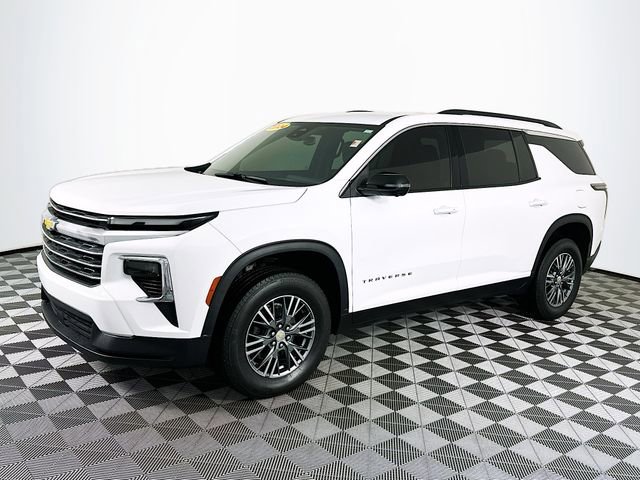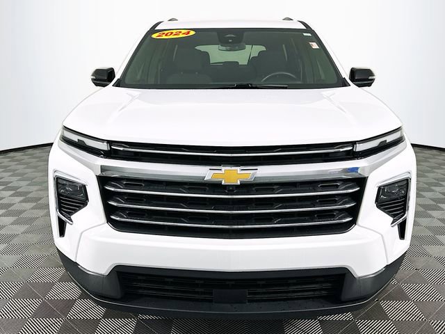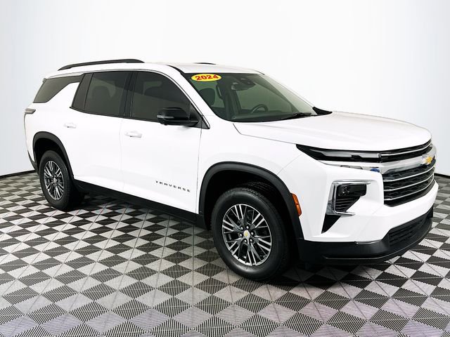 Preferred Equipment Group 1LT, 3rd row seats: split-bench, 4-Way Manual Front Passenger Seat Adjuster, 4-Wheel Disc Brakes, 6 Speakers, 6-Speaker Audio System Feature, 8-Way Power Driver Seat Adjuster, ABS brakes, Air Conditioning, Alloy wheels, AM/FM radio: SiriusXM with 360L, Apple CarPlay/Android Auto, Auto High-beam Headlights, Automatic temperature control, Brake assist, Bumpers: body-color, Compass, Delay-off headlights, Driver 4-Way Power Lumbar Seat Adjuster, Driver door bin, Driver vanity mirror, Dual front impact airbags, Dual front side impact airbags, Electronic Stability Control, Emergency communication system, Exterior Parking Camera Rear, Four wheel independent suspension, Front anti-roll bar, Front Bucket Seats, Front Center Armrest, Front dual zone A/C, Front reading lights, Fully automatic headlights, Heated door mirrors, Heated front seats, Heated steering wheel, Illuminated entry, Low tire pressure warning, Navigation System, Occupant sensing airbag, Outside temperature display, Overhead airbag, Overhead console, Panic alarm, Passenger door bin, Passenger vanity mirror, Power door mirrors, Power driver seat, Power Liftgate, Power steering, Power windows, Premium Cloth Seat Trim, Radio data system, Radio: 17.7 Diagonal Display, Rear air conditioning, Rear anti-roll bar, Rear reading lights, Rear window defroster, Rear window wiper, Remote keyless entry, Security system, SiriusXM w/360L, Speed control, Speed-sensing steering, Spoiler, Steering wheel mounted audio controls, Tachometer, TBD Axle Ratio, Telescoping steering wheel, Tilt steering wheel, Traction control, Trip computer, Turn signal indicator mirrors, Variably intermittent wipers, Voltmeter, and Wheels: 18 Grazen Metallic Machined-Face Aluminum. Clean CARFAX. Summit White Chevrolet 2024 Traverse LT 1LT
