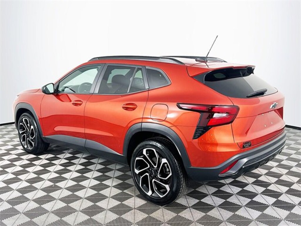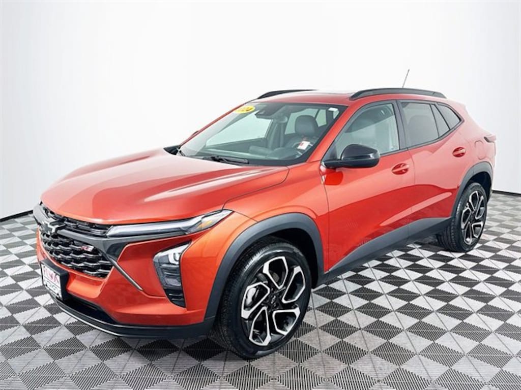 Driver Confidence Package (Adaptive Cruise Control, Lane Change Alert w/Side Blind Zone Alert, and Rear Cross-Traffic Alert), License Plate Front Mounting Package, Preferred Equipment Group 2RS, Sunroof Package (Power Sliding Glass Sunroof w/Manual Shade and Wireless Charging), 2-Way Adjustable Front Head Restraints, 3.50 Final Drive Axle Ratio, 4-Way Manual Front Passenger Seat Adjuster, 4-Wheel Disc Brakes, 6 Speakers, 6-Speaker Audio System Feature, 6-Way Manual Driver Seat Adjuster, ABS brakes, Air Conditioning, Alloy wheels, AM/FM radio: SiriusXM, Auto High-beam Headlights, Automatic temperature control, Brake assist, Bumpers: body-color, Compass, Delay-off headlights, Driver door bin, Driver vanity mirror, Dual front impact airbags, Dual front side impact airbags, Electronic Stability Control, Emergency communication system: OnStar and Chevrolet connected services capable, Evotex Seat Trim, Exterior Parking Camera Rear, Front & Rear All-Weather Floor Liners (LPO), Front anti-roll bar, Front Bucket Seats, Front Center Armrest, Front reading lights, Front wheel independent suspension, Fully automatic headlights, Heated door mirrors, Heated Driver & Front Passenger Seats, Heated front seats, Heated steering wheel, Illuminated entry, Jet Black Cargo Liner (LPO), Low tire pressure warning, Occupant sensing airbag, Outside temperature display, Overhead airbag, Overhead console, Panic alarm, Passenger door bin, Passenger vanity mirror, Power door mirrors, Power steering, Power windows, Premium audio system: Chevrolet Infotainment 3, Radio data system, Radio: Audio System w/AM/FM, Rear Park Assist (DISC), Rear window defroster, Rear window wiper, Remote keyless entry, Security system, SiriusXM, Speed control, Split folding rear seat, Spoiler, Sport steering wheel, Steering wheel mounted audio controls, Tachometer, Telescoping steering wheel, Tilt steering wheel, Traction control, Trip computer, Variably intermittent wipers, and Wheels: 19 Black-Painted Machined Aluminum. Clean CARFAX. Cayenne Orange Metallic Chevrolet 2024 Trax 2RS
