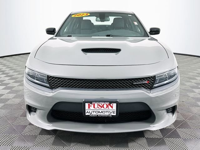 Quick Order Package 2EH, Black Cloth, 1-Yr SiriusXM Guardian Trial, 2-Piece Shark Fin Antenna, 4-Wheel Disc Brakes, 4G LTE Wi-Fi Hot Spot, 6 Speakers, 8.4 Touchscreen Display, ABS brakes, Air Conditioning, Alloy wheels, AM/FM radio: SiriusXM, Anti-whiplash front head restraints, Apple CarPlay, Apple CarPlay/Android Auto, Auto-dimming Rear-View mirror, Automatic temperature control, Brake assist, Bumpers: body-color, Cloth Performance Seats, Compass, Delay-off headlights, Driver door bin, Driver vanity mirror, Dual front impact airbags, Dual front side impact airbags, Electronic Stability Control, Emergency communication system: SiriusXM Guardian, For Details, Visit DriveUconnect.com, Four wheel independent suspension, Front anti-roll bar, Front Bucket Seats, Front Center Armrest, Front dual zone A/C, Front License Plate Bracket, Front reading lights, Fully automatic headlights, Garage door transmitter: HomeLink, Google Android Auto, GPS Antenna Input, HD Radio, Heated door mirrors, Illuminated entry, Integrated Center Stack Radio, Integrated Voice Command w/Bluetooth, Knee airbag, Leather Shift Knob, Low tire pressure warning, Manufacturer's Statement of Origin, Media Hub (2 USB, AUX), Occupant sensing airbag, Outside temperature display, Overhead airbag, Overhead console, Panic alarm, ParkView Rear Back-Up Camera, Passenger door bin, Passenger vanity mirror, Power 2-Way Driver Lumbar Adjust, Power 8-Way Driver Seat, Power door mirrors, Power driver seat, Power steering, Power windows, Radio: Uconnect 4C w/8.4 Display, Rear anti-roll bar, Rear Armrest w/Cupholder Seat, Rear reading lights, Rear seat center armrest, Rear window defroster, Remote keyless entry, Speed control, Speed-Sensitive Wipers, Split folding rear seat, Spoiler, Steering wheel mounted audio controls, Tachometer, Telescoping steering wheel, Tilt steering wheel, Traction control, Trip computer, USB Host Flip, Variably intermittent wipers, and Wheels: 20 x 8 Satin Carbon PainteD. Clean CARFAX. CARFAX One-Owner. Destroyer Gray Clearcoat Dodge 2023 Charger GT3.6L V6 24V VVT RWD 8-Speed AutomaticOdometer is 1668 miles below market average! 19/30 City/Highway MPG Black Cloth.We want to hear you say: I found it at Fuson!