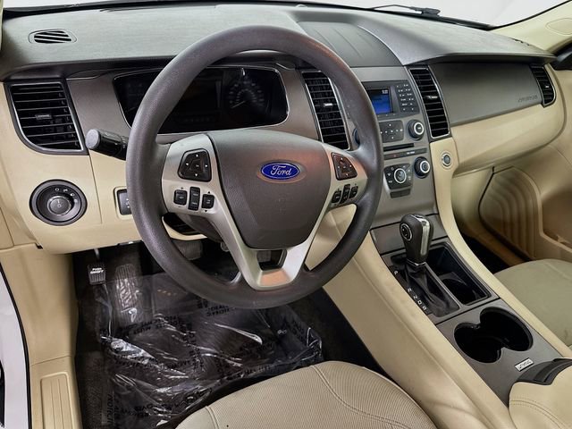 Equipment Group 100A, 4-Wheel Disc Brakes, 6 Speakers, ABS brakes, Air Conditioning, Alloy wheels, AM/FM radio, Brake assist, Bumpers: body-color, CD player, Cloth Front Bucket Seats, Delay-off headlights, Driver door bin, Driver vanity mirror, Dual front impact airbags, Dual front side impact airbags, Electronic Stability Control, Emergency communication system: 911 Assist, Exterior Parking Camera Rear, Four wheel independent suspension, Front anti-roll bar, Front Bucket Seats, Front Center Armrest, Front reading lights, Fully automatic headlights, Illuminated entry, Knee airbag, Low tire pressure warning, Occupant sensing airbag, Overhead airbag, Overhead console, Panic alarm, Passenger door bin, Passenger vanity mirror, Power door mirrors, Power driver seat, Power passenger seat, Power steering, Power windows, Radio data system, Radio: AM/FM Stereo/Single-CD/MP3 Capable, Rear anti-roll bar, Rear reading lights, Rear seat center armrest, Rear window defroster, Remote keyless entry, Speed control, Speed-sensing steering, Speed-Sensitive Wipers, Split folding rear seat, Steering wheel mounted audio controls, SYNC Communications & Entertainment System, Tachometer, Telescoping steering wheel, Tilt steering wheel, Traction control, Trip computer, Variably intermittent wipers, and Wheels: 18 Sparkle Silver-Painted Aluminum. Oxford White Ford 2018 Taurus SE