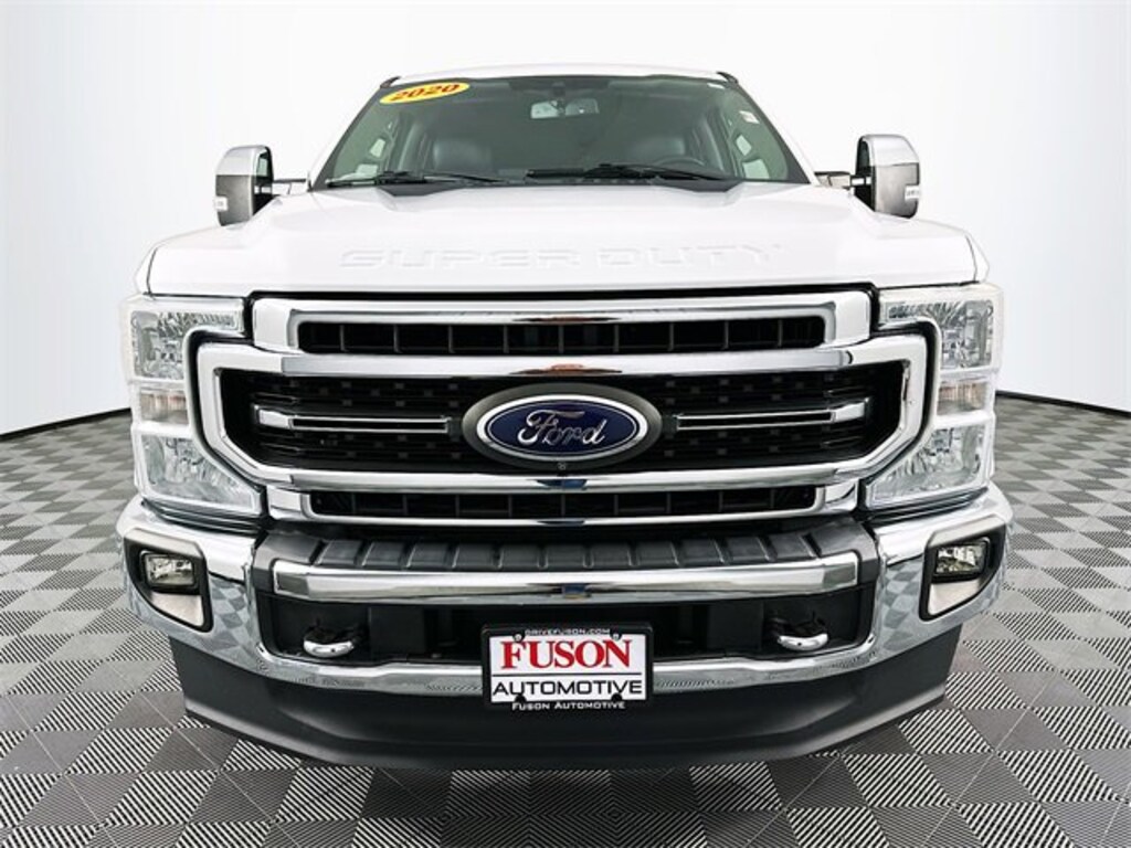 5th Wheel/Gooseneck Hitch Prep Package, Chrome Package (6 Angular Chrome Step Bars, Body-Color Door Handles w/Chrome Insert, Chrome Exhaust Tip, PowerScope Trailer Tow Mirrors w/Heat, Unique Chrome Mirror Caps, and Wheels: 18 Chrome PVD Aluminum), FX4 Off-Road Package (Hill Descent Control, Off-Road Specifically Tuned Shock Absorbers, and Unique FX4 Off-Road Box Decal), GVWR: 10,000 lb Payload Package, High Capacity Trailer Tow Package, Lariat Ultimate Package (Ambient Lighting - Fixed Color, Easy Entry®/Exit Memory Driver's Seat Feature, Intelligent Access w/Push-Button Start, LED Box Lighting, Memory Power-Adjustable Pedals, Power Heated/Ventilated Driver Seat w/Memory, Power Heated/Ventilated Passenger Seat, Power Telescoping/Tilt Steering Wheel/Column, PowerScope Trailer Tow Mirrors w/Memory, Remote Start System, Remote Tailgate Release, Tailgate Step & Handle, and Voice-Activated Touchscreen Navigation System), Order Code 608A, Pro Trailer Backup Assist - High Capacity (Ultimate Trailer Tow Camera System), Snow Plow Prep Package, 4WD, 10 Speakers, 110V/400W Outlet, 332 Amp Alternators, 4-Wheel Disc Brakes, 6 Angular Chrome Step Bar, ABS brakes, Adjustable pedals, Air Conditioning, Alloy wheels, AM/FM radio: SiriusXM, Auto High-beam Headlights, Auto-dimming Rear-View mirror, Automatic temperature control, Brake assist, Bumpers: chrome, Compass, Delay-off headlights, Driver door bin, Driver vanity mirror, Dual front impact airbags, Dual front side impact airbags, Electronic Stability Control, Emergency communication system: SYNC 3 911 Assist, Exterior Parking Camera Rear, Flow-Through Console, Front & Rear Wheel Well Liners (Pre-Installed), Front anti-roll bar, Front Bucket Seats, Front Center Armrest, Front dual zone A/C, Front fog lights, Front Leather Seating Surfaces 40/Console/40, Front reading lights, Fully automatic headlights, Heated door mirrors, Illuminated entry, Leather steering wheel, Low tire pressure warning, Outside temperature display, Overhead airbag, Overhead console, Panic alarm, Passenger door bin, Passenger vanity mirror, Power door mirrors, Power driver seat, Power passenger seat, Power steering, Power windows, Radio data system, Radio: B&O System by Bang & Olufsen, Rear Parking Sensors, Rear reading lights, Rear seat center armrest, Rear step bumper, Rear window defroster, Remote keyless entry, Security system, SiriusXM Radio, Speed control, Split folding rear seat, Steering wheel mounted audio controls, SYNC 3 Communications & Entertainment System, Tachometer, Telescoping steering wheel, Tilt steering wheel, Tough Bed Spray-In Bedliner, Traction control, Trip computer, Turn signal indicator mirrors, Twin Panel Power Moonroof, Universal Garage Door Opener (UGDO), Upfitter Switches (6), Variably intermittent wipers, and Wheels: 18 Bright Machined Cast Aluminum. CARFAX One-Owner. Recent Arrival! Oxford White Ford 2020 F-250SD Lariat