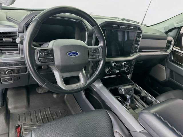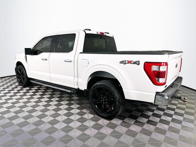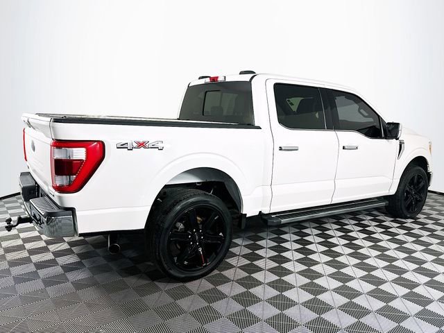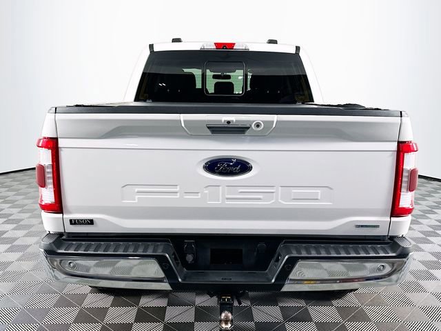 Equipment Group 501A Mid (Onboard 400W Outlet, Radio: B&O Sound System by Bang & Olufsen, and Universal Garage Door Opener), Ford Co-Pilot360 Assist 2.0 (Connected Built-In Navigation, Evasive Steering Assist, Intelligent Adaptive Cruise Control w/Stop & Go, Intersection Assist, and Speed Sign Recognition), Lariat Chrome Appearance Package (6 Chrome Running Board, Chrome 2-Bar Grille w/4 Minor Bars, Chrome Door & Tailgate Handles w/Body-Color Bezel, Chrome Single-Tip Exhaust, Chrome Skull Caps on Exterior Mirrors, and Wheels: 18 Chrome-Like PVD), Trailer Tow Package (Class IV Trailer Hitch Receiver, Integrated Trailer Brake Controller, and Pro Trailer Backup Assist), 4WD, 18 Machined-Aluminum Wheels, 360 Degree Camera, 4-Wheel Disc Brakes, 7 Speakers, ABS brakes, Adjustable pedals, Air Conditioning, Alloy wheels, AM/FM radio: SiriusXM with 360L, Auto High-beam Headlights, Auto Start-Stop Removal, Auto-dimming door mirrors, Auto-dimming Rear-View mirror, Automatic temperature control, Brake assist, Bumpers: chrome, Compass, Delay-off headlights, Driver door bin, Driver vanity mirror, Dual front impact airbags, Dual front side impact airbags, Electronic Stability Control, Emergency communication system: SYNC 4 911 Assist, Extended Range 36 Gallon Fuel Tank, Exterior Parking Camera Rear, Front anti-roll bar, Front Center Armrest w/Storage, Front dual zone A/C, Front fog lights, Front reading lights, Front wheel independent suspension, Fully automatic headlights, Heated door mirrors, Heated front seats, Illuminated entry, Leather-Trimmed 40/20/40 Front Seat, LED Sideview Mirror Spotlights, Low tire pressure warning, Memory seat, Navigation system: Connected Navigation (90-Day Trial), Occupant sensing airbag, Outside temperature display, Overhead airbag, Overhead console, Panic alarm, Passenger door bin, Passenger vanity mirror, Pedal memory, Power door mirrors, Power driver seat, Power passenger seat, Power steering, Power windows, Radio data system, Radio: AM/FM SiriusXM w/360L, Rear reading lights, Rear seat center armrest, Rear step bumper, Rear window defroster, Remote keyless entry, Security system, Speed control, Speed-sensing steering, Split folding rear seat, Steering wheel mounted audio controls, SYNC 4 w/Enhanced Voice Recognition, Tachometer, Telescoping steering wheel, Tilt steering wheel, Traction control, Trip computer, Turn signal indicator mirrors, Variably intermittent wipers, Ventilated front seats, Voltmeter, and Wheels: 20 Chrome-Like PVD. CARFAX One-Owner. White Ford 2021 F-150 Lariat