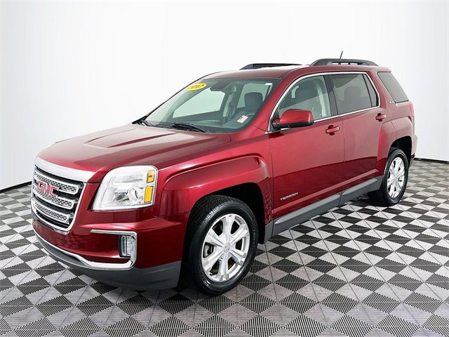 Convenience Package (Heated Driver & Front Passenger Seats and Remote Vehicle Start), Preferred Equipment Group 3SB (Bluetooth® For Phone, Leather-Wrapped Steering Wheel, and Single-Zone Automatic Climate Control), 3.23 Axle Ratio, 4-Wheel Disc Brakes, 8 Speakers, 8-Way Power Driver Seat Adjuster, ABS brakes, Air Conditioning, Alloy wheels, AM/FM radio: SiriusXM, Auto-dimming Rear-View mirror, Automatic temperature control, Brake assist, Bumpers: body-color, Compass, Delay-off headlights, Driver door bin, Driver vanity mirror, Dual front impact airbags, Dual front side impact airbags, E10 Fuel Capable, Electronic Stability Control, Emergency communication system: OnStar Guidance, Exterior Parking Camera Rear, Four wheel independent suspension, Front anti-roll bar, Front Bucket Seats, Front Center Armrest, Front License Plate Bracket, Front reading lights, Fully automatic headlights, Heated door mirrors, Illuminated entry, IntelliLink, Low tire pressure warning, Occupant sensing airbag, Outside temperature display, Overhead airbag, Panic alarm, Passenger door bin, Passenger vanity mirror, Pioneer Premium 8-Speaker System, Power door mirrors, Power driver seat, Power steering, Power Tilt-Sliding Sunroof w/Express Open, Power windows, Premium Cloth Seat Trim, Radio data system, Radio: Color Touch AM/FM Stereo, Rear anti-roll bar, Rear seat center armrest, Rear window defroster, Rear window wiper, Remote keyless entry, Roof rack: rails only, Security system, SiriusXM Satellite Radio, Speed control, Speed-sensing steering, Split folding rear seat, Spoiler, Steering wheel mounted audio controls, Tachometer, Telescoping steering wheel, Tilt steering wheel, Traction control, Trip computer, Variably intermittent wipers, and Wheels: 18 x 7 Aluminum (4) Crimson Red Tintcoat GMC 2017 Terrain SLE-2