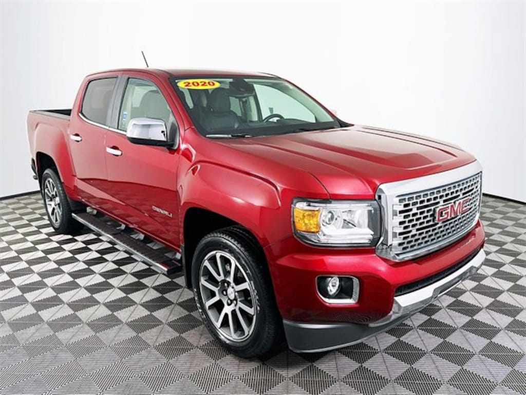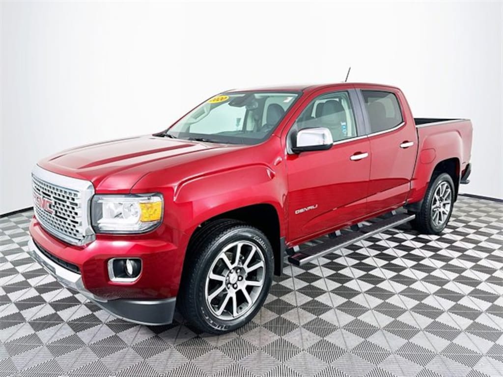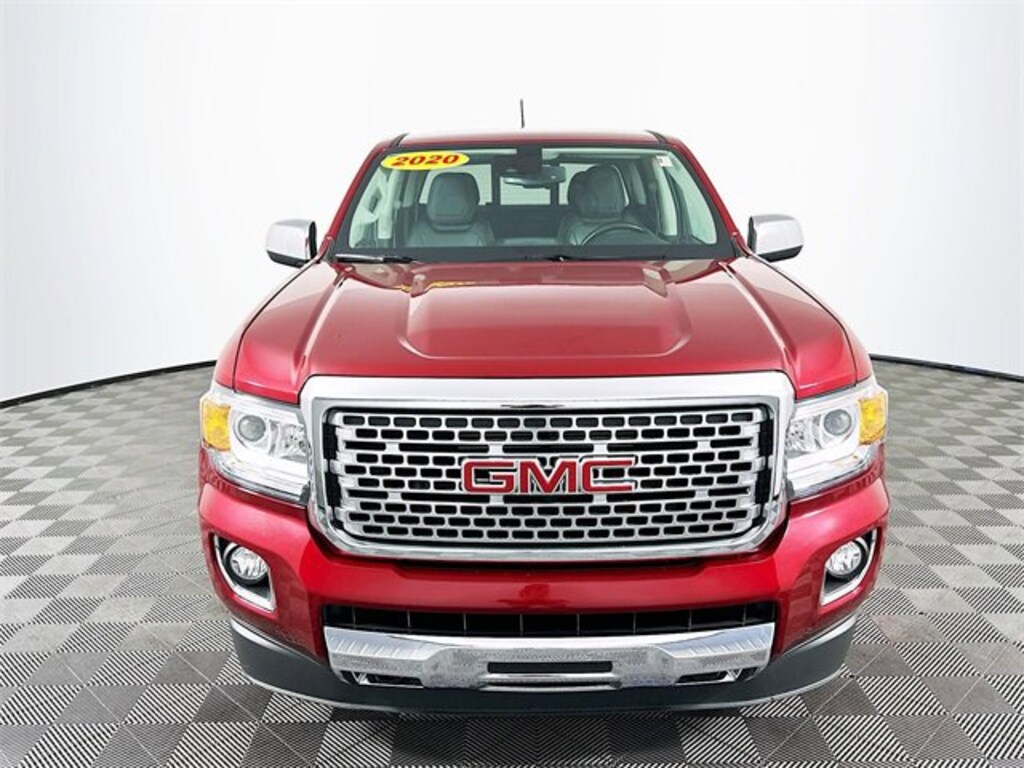 Driver Alert Package (Forward Collision Alert and Lane Departure Warning System), Preferred Equipment Group 4SD (5 Rectangular Chrome Assist Steps, Black Spray-On Bedliner w/GMC Logo, Denali-Specific Chrome Grille, Heated Steering Wheel, Polished Exhaust Tip, Tow/Haul Mode, Trailering Assist Guideline Hitch Guidance, Ultrasonic Rear Parking Assist, Ventilated Driver Seat, and Ventilated Front Passenger Seat), Trailering Package, 4WD, 2 USB Data Ports, 3.42 Rear Axle Ratio, 4-Way Power Front Passenger Seat Adjuster, 4-Wheel Disc Brakes, 7 Speakers, ABS brakes, Air Conditioning, Alloy wheels, AM/FM radio: SiriusXM, Apple CarPlay/Android Auto, Auto-dimming Rear-View mirror, Automatic temperature control, Bose Premium 7-Speaker Audio System Feature, Bumpers: body-color, Compass, Delay-off headlights, Driver 6-Way Power Seat Adjuster, Driver door bin, Driver vanity mirror, Dual front impact airbags, Dual front side impact airbags, Electronic Stability Control, Exterior Parking Camera Rear, Front anti-roll bar, Front Bucket Seats, Front Center Armrest, Front fog lights, Front License Plate Kit, Front reading lights, Front wheel independent suspension, Fully automatic headlights, HD Radio, Heated door mirrors, Heated Driver & Front Passenger Seats, Heated front seats, Heated steering wheel, Illuminated entry, Integrated Trailer Brake Controller, Low tire pressure warning, Navigation System, Occupant sensing airbag, Outside temperature display, Overhead airbag, Overhead console, Panic alarm, Passenger door bin, Passenger vanity mirror, Perforated Leather-Appointed Seat Trim, Power door mirrors, Power Driver Lumbar Control Seat Adjuster, Power driver seat, Power Passenger Lumbar Control Seat Adjuster, Power passenger seat, Power steering, Power windows, Premium audio system: GMC Infotainment System, Radio data system, Radio: AM/FM w/8 Diagonal Color Touch-Screen Nav, Rear reading lights, Rear seat center armrest, Rear step bumper, Rear window defroster, Remote keyless entry, Security system, SiriusXM Radio, Speed control, Speed-sensing steering, Steering wheel mounted audio controls, Tachometer, Telescoping steering wheel, Tilt steering wheel, Traction control, Trip computer, Variably intermittent wipers, Ventilated front seats, and Wheels: 20 x 8.5 Diamond Cut Machined Aluminum. Clean CARFAX. CARFAX One-Owner. Red Quartz Tintcoat GMC 2020 Canyon Denali