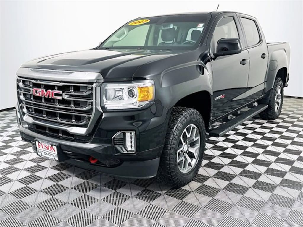 Preferred Equipment Group 4SB (Hitch Guidance and Tow/Haul Mode), Trailering Package, 4WD, 3 Years of OnStar & Connected Services Plan (DISC), 3.42 Rear Axle Ratio, 4-Wheel Disc Brakes, 6 Speakers, 6-Speaker Audio System Feature, ABS brakes, Air Conditioning, Alloy wheels, AM/FM radio: SiriusXM, Apple CarPlay/Android Auto, Auto-dimming Rear-View mirror, Automatic temperature control, Bumpers: body-color, Cloth Seat Trim, Compass, Delay-off headlights, Driver 6-Way Power Seat Adjuster, Driver door bin, Driver Instrument Information Enhanced Display, Driver vanity mirror, Dual front impact airbags, Dual front side impact airbags, Electronic Stability Control, Emergency communication system: OnStar and GMC Connected Services capable, Exterior Parking Camera Rear, Front anti-roll bar, Front Bucket Seats, Front Center Armrest, Front fog lights, Front License Plate Kit, Front reading lights, Front wheel independent suspension, Fully automatic headlights, HD Radio, Heated door mirrors, Heated Steering Wheel, Illuminated entry, Low tire pressure warning, Not Equipped w/Hood Insulator (DISC), Occupant sensing airbag, Outside temperature display, Overhead airbag, Overhead console, Panic alarm, Passenger door bin, Passenger vanity mirror, Power door mirrors, Power Driver Lumbar Control Seat Adjuster, Power driver seat, Power steering, Power windows, Premium audio system: GMC Infotainment System, Radio data system, Radio: AM/FM w/8 Diagonal Color Touch-Screen, Rear reading lights, Rear seat center armrest, Rear step bumper, Rear window defroster, Remote keyless entry, Security system, SiriusXM Radio, Speed control, Speed-sensing steering, Steering wheel mounted audio controls, Tachometer, Telescoping steering wheel, Tilt steering wheel, Traction control, Trip computer, Variably intermittent wipers, and Wheels: 17 x 8 Dark Argent Metallic. Clean CARFAX. Recent Arrival! Onyx Black GMC 2022 Canyon AT4 w/ClothV6 4WD 8-Speed AutomaticOdometer is 4143 miles below market average! 4WD.We want to hear you say: I found it at Fuson!