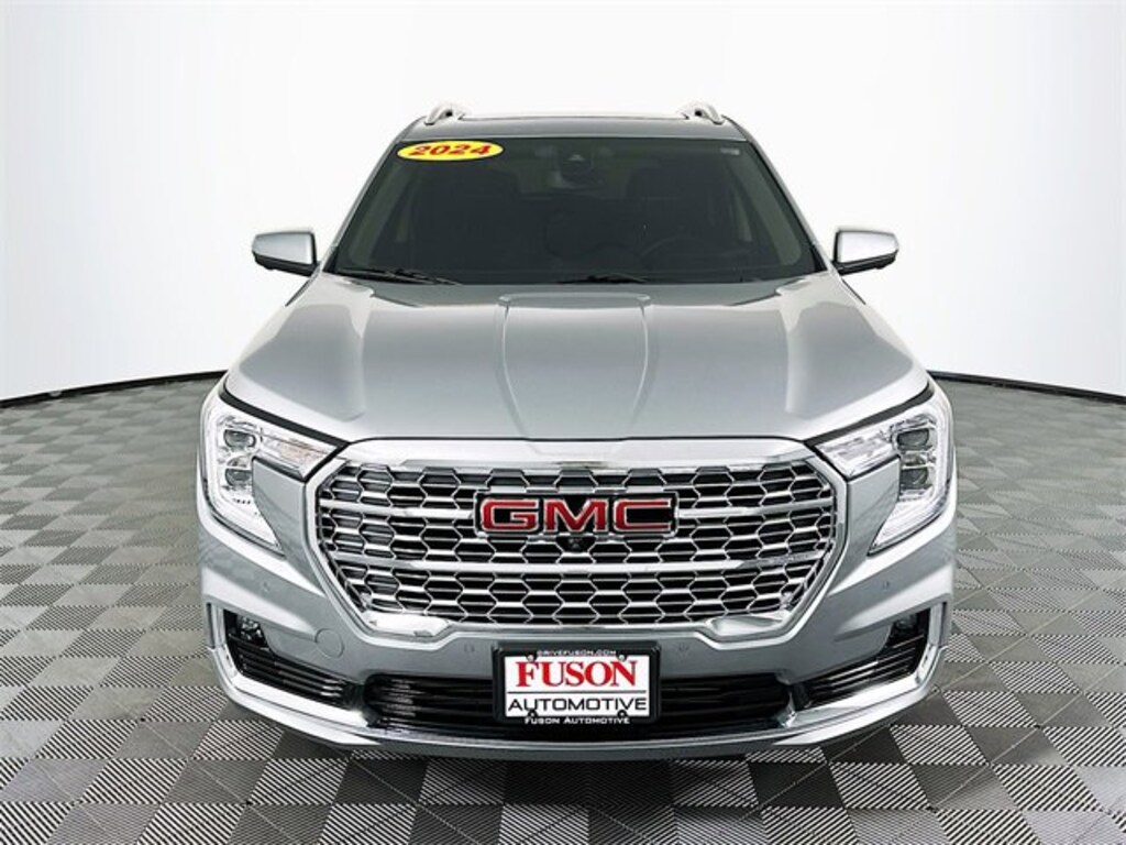 Comfort Package (Heated Rear Outboard Seating Positions, Ventilated Driver Seat, and Ventilated Front Passenger Seat), Denali Premium Package, Floor Liner Package (LPO) (Front & Rear All-Weather Floor Liners (LPO) and Integrated Cargo Liner (LPO)), Preferred Equipment Group 5SA, Tech Package (Adaptive Cruise Control, Automatic Parking Assist, and HD Surround Vision), AWD, 2 USB Data Ports, 2 USB Data Ports w/SD Card Reader, 3.47 Final Drive Axle Ratio, 4-Wheel Disc Brakes, 6-Way Power Front Passenger Seat, 7 Speakers, 8-Way Power Driver Seat Adjuster, ABS brakes, Air Conditioning, Alloy wheels, AM/FM radio: SiriusXM, Auto High-beam Headlights, Auto-dimming Rear-View mirror, Automatic temperature control, Bluetooth® For Phone, Brake assist, Bumpers: body-color, Compass, Delay-off headlights, Driver & Front Passenger Heated Seats, Driver door bin, Driver vanity mirror, Dual front impact airbags, Dual front side impact airbags, Electronic Stability Control, Emergency communication system: OnStar and GMC connected services capable, Four wheel independent suspension, Front anti-roll bar, Front Bucket Seats, Front Center Armrest, Front dual zone A/C, Front fog lights, Front Passenger 2-Way Power Lumbar, Front reading lights, Fully automatic headlights, Garage door transmitter, Heads-Up Display, Heated door mirrors, Heated front seats, Heated steering wheel, Illuminated entry, Low tire pressure warning, Memory seat, Navigation system: GMC Connected Navigation, Occupant sensing airbag, Outside temperature display, Overhead airbag, Overhead console, Panic alarm, Passenger door bin, Passenger vanity mirror, Perforated Leather-Appointed Seat Trim, Power door mirrors, Power Driver Lumbar Control, Power driver seat, Power Liftgate, Power passenger seat, Power steering, Power windows, Premium 7-Speaker Bose Sound System w/Amplifier, Radio data system, Radio: GMC Infotainment Audio System w/Navigation, Rear anti-roll bar, Rear seat center armrest, Rear window defroster, Rear window wiper, Remote keyless entry, Roof rack: rails only, Security system, SiriusXM, Skyscape Power Sunroof w/Power Sunscreen, Speed control, Speed-sensing steering, Split folding rear seat, Spoiler, Steering wheel mounted audio controls, Tachometer, Telescoping steering wheel, Tilt steering wheel, Traction control, Trip computer, Turn signal indicator mirrors, Variably intermittent wipers, Wheels: 19 x 7.5 Bright Machined Aluminum, and Wireless Apple CarPlay/Wireless Android Auto. Clean CARFAX. CARFAX One-Owner. Recent Arrival! Sterling Metallic GMC 2024 Terrain Denali1.5L DOHC AWD 9-Speed AutomaticOdometer is 882 miles below market average! 23/28 City/Highway MPG AWD.We want to hear you say: I found it at Fuson!