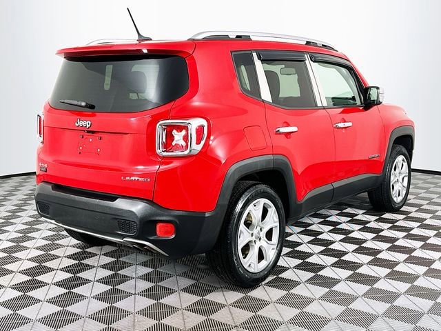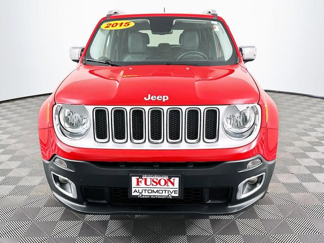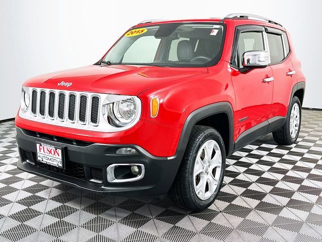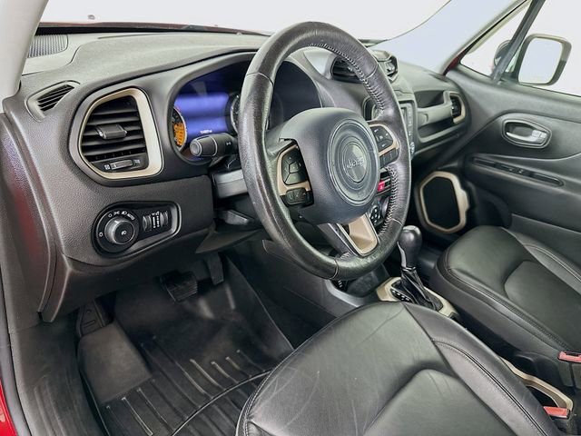 Quick Order Package 27G, 18 x 7.0 Aluminum Polished Wheels, 18 x 7.0 Aluminum Wheels, 3.734 Axle Ratio, 4-Wheel Disc Brakes, 6 Speakers, ABS brakes, Air Conditioning, Alloy wheels, AM/FM radio: SiriusXM, Anti-whiplash front head restraints, Auto-dimming Rear-View mirror, Automatic temperature control, Body Color Roof, Brake assist, Compass, Delay-off headlights, Driver door bin, Driver vanity mirror, Dual front impact airbags, Dual front side impact airbags, Electronic Stability Control, Engine Oil Cooler, Four wheel independent suspension, Front anti-roll bar, Front Bucket Seats, Front Center Armrest, Front dual zone A/C, Front fog lights, Front reading lights, Fully automatic headlights, Heated door mirrors, Heated front seats, Heated steering wheel, Illuminated entry, Knee airbag, Leather Shift Knob, Leather steering wheel, Leather Trimmed Bucket Seats, Leather Wrapped Shift Knob, Low tire pressure warning, Normal Duty Suspension, Occupant sensing airbag, Outside temperature display, Overhead airbag, Overhead console, Panic alarm, ParkView Rear Back-Up Camera, Passenger door bin, Passenger vanity mirror, Passive Entry/Keyless Go, Power door mirrors, Power driver seat, Power steering, Power windows, Radio data system, Radio: Uconnect 5.0 AM/FM/BT, Rear anti-roll bar, Rear reading lights, Rear seat center armrest, Rear window defroster, Rear window wiper, Remote keyless entry, Remote Start System, Roof rack: rails only, Speed control, Split folding rear seat, Spoiler, Steering wheel mounted audio controls, Tachometer, Telescoping steering wheel, Tilt steering wheel, Traction control, Trip computer, Turn signal indicator mirrors, Variably intermittent wipers, and Voltmeter. Clean CARFAX. Colorado Red Jeep 2015 Renegade Limited