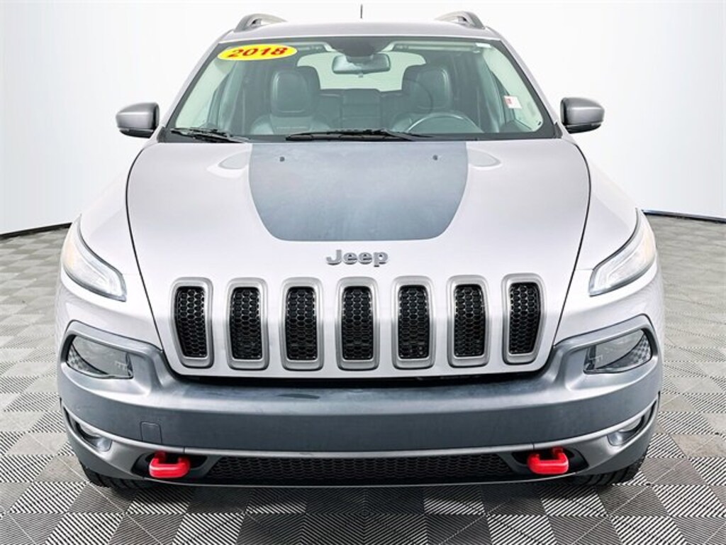 Quick Order Package 25E, 17 x 7.5 Aluminum Wheels, 4-Wheel Disc Brakes, 4.083 Axle Ratio, 6 Speakers, 600 Amp Maintenance Free Battery, 8.4 Touchscreen Display, ABS brakes, Air Conditioning, Alloy wheels, AM/FM radio: SiriusXM, Anti-whiplash front head restraints, Automatic temperature control, Auxiliary Transmission Oil Cooler, Brake assist, Cloth/Leather/Vinyl Bucket Seats, Compass, Delay-off headlights, Driver door bin, Driver vanity mirror, Dual front impact airbags, Dual front side impact airbags, Electronic Stability Control, Emergency communication system: Uconnect Access, Engine Oil Cooler, Exterior Mirrors Courtesy Lamps, Exterior Mirrors w/Supplemental Signals, Four wheel independent suspension, Front anti-roll bar, Front Bucket Seats, Front Center Armrest, Front dual zone A/C, Front fog lights, Front License Plate Bracket, Front reading lights, Fully automatic headlights, GPS Antenna Input, Heated door mirrors, High intensity discharge headlights: Bi-Xenon, Illuminated entry, Integrated Voice Command w/Bluetooth, Knee airbag, Leather Shift Knob, Low tire pressure warning, Manufacturer's Statement of Origin, Occupant sensing airbag, Off Road Suspension, Outside temperature display, Overhead airbag, Overhead console, Panic alarm, ParkView Rear Back-Up Camera, Passenger door bin, Passenger vanity mirror, Power door mirrors, Power driver seat, Power steering, Power windows, Radio data system, Radio: Uconnect 3C w/8.4 Display, Rear anti-roll bar, Rear reading lights, Rear seat center armrest, Rear side impact airbag, Rear window defroster, Rear window wiper, Remote keyless entry, Roof rack: rails only, SiriusXM Satellite Radio, Speed control, Speed-sensing steering, Split folding rear seat, Spoiler, Steering wheel mounted audio controls, Tachometer, Telescoping steering wheel, Tilt steering wheel, Traction control, Trip computer, Turn signal indicator mirrors, Uconnect Access, Variably intermittent wipers, and Voltmeter. Billet Silver Metallic Clearcoat Jeep 2018 Cherokee Trailhawk