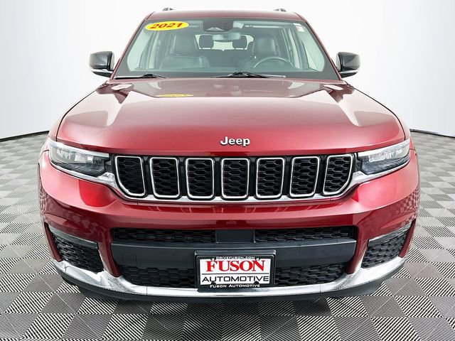 Quick Order Package 22E, 10.1 Touchscreen Display, 3.45 Rear Axle Ratio, 3rd row seats: split-bench, 4-Wheel Disc Brakes, 506 Watt Amplifier, 6 Speakers, 9 Amplified Speakers w/Subwoofer, ABS brakes, Air Conditioning, Alloy wheels, AM/FM radio: SiriusXM w/360L, Anti-whiplash front head restraints, Apple CarPlay, Apple CarPlay/Android Auto, Audio memory, Auto High-beam Headlights, Automatic temperature control, Brake assist, Bumpers: body-color, Capri Leather Seats, Compass, Connected Travel & Traffic Services, Connectivity - US/Canada, Delay-off headlights, Disassociated Touchscreen Display, Driver door bin, Driver vanity mirror, Dual front impact airbags, Dual front side impact airbags, Electronic Stability Control, Emergency communication system, Four wheel independent suspension, Front anti-roll bar, Front Bucket Seats, Front Center Armrest w/Storage, Front dual zone A/C, Front fog lights, Front reading lights, Fully automatic headlights, Garage door transmitter, Google Android Auto, GPS Antenna Input, GPS Navigation, HD Radio, Heated door mirrors, Heated front seats, Heated rear seats, Heated steering wheel, Illuminated entry, Integrated Center Stack Radio, Integrated Voice Command w/Bluetooth, Knee airbag, Leather steering wheel, Low tire pressure warning, Manual Fold Seatbacks, Memory seat, Normal Duty Suspension, Occupant sensing airbag, Outside temperature display, Overhead airbag, Overhead console, Panic alarm, ParkView Rear Back-Up Camera, Passenger door bin, Passenger vanity mirror, Power door mirrors, Power driver seat, Power Liftgate, Power passenger seat, Power steering, Power windows, Radio data system, Radio: Uconnect 5 Nav w/10.1 Display, Radio: Uconnect 5 w/8.4 Display, Rear air conditioning, Rear anti-roll bar, Rear reading lights, Rear window defroster, Rear window wiper, Reclining 3rd row seat, Remote keyless entry, Roof rack: rails only, Security system, SiriusXM Satellite Radio, SiriusXM w/360L, Speed control, Speed-Sensitive Wipers, Split folding rear seat, Spoiler, Steering wheel mounted audio controls, Tachometer, Telescoping steering wheel, Tilt steering wheel, Traction control, Trip computer, Turn signal indicator mirrors, USB Host Flip, Variably intermittent wipers, Voltmeter, and Wheels: 18 x 8.0 Fully Painted Aluminum 2. Clean CARFAX. Velvet Red Pearlcoat Jeep 2021 Grand Cherokee L Limited3.6L V6 24V VVT 4WD 8-Speed AutomaticWe want to hear you say: I found it at Fuson!