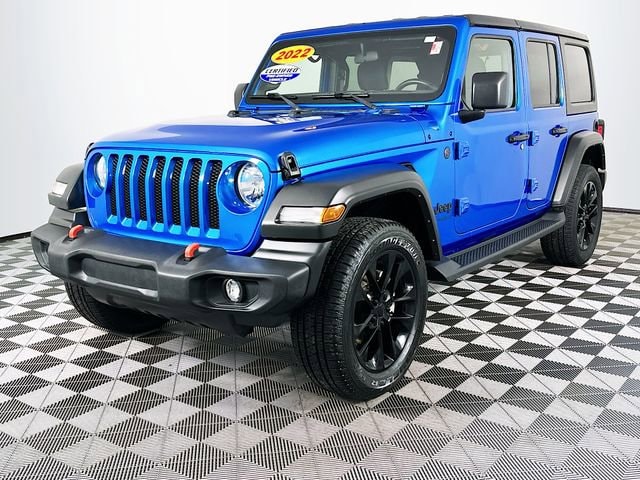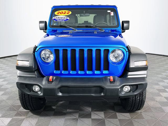 Convenience Group (Universal Garage Door Opener), Quick Order Package 22S Sport S (Automatic Headlamps, Deep Tint Sunscreen Windows, Front 1-Touch Down Power Windows, Leather Wrapped Steering Wheel, Power Heated Mirrors, Remote Keyless Entry, Security Alarm, Speed Sensitive Power Locks, Sport S, Sun Visors w/Illuminated Vanity Mirrors, and Wheels: 17 x 7.5 Tech Silver Aluminum), 110 MPH Vehicle Max Speed Calibration, 3.45 Rear Axle Ratio, 4-Wheel Disc Brakes, 8 Speakers, ABS brakes, Air Conditioning, AM/FM radio, Apple CarPlay/Android Auto, Aux Battery, Black 3-Piece Hard Top, Brake assist, Cloth Low-Back Bucket Seats, Compass, Delay-off headlights, Driver door bin, Driver vanity mirror, Dual front impact airbags, Dual front side impact airbags, Electronic Stability Control, Emergency communication system: SiriusXM Guardian, Engine Oil Cooler, Freedom Panel Storage Bag, Front anti-roll bar, Front Bucket Seats, Front Center Armrest w/Storage, Front fog lights, Front reading lights, Integrated roll-over protection, Jeep Trail Rated Kit, Low tire pressure warning, Manufacturer's Statement of Origin, MOPAR Hardtop Headliner, No Soft Top, Non-Lock Fuel Cap w/o Discriminator, Normal Duty Suspension, Occupant sensing airbag, Outside temperature display, ParkView Rear Back-Up Camera, Passenger door bin, Passenger vanity mirror, Power steering, Radio data system, Radio: Uconnect 4 w/7 Display, Rear anti-roll bar, Rear reading lights, Rear Window Defroster, Rear Window Wiper/Washer, Speed control, Split folding rear seat, Steering wheel mounted audio controls, Stop-Start Dual Battery System, Tachometer, Telescoping steering wheel, Tilt steering wheel, Traction control, Trip computer, Variably intermittent wipers, and Wheels: 17 x 7.5 Black Steel Styled. Clean CARFAX. Recent Arrival! Hydro Blue Pearl Coat Jeep 2022 Wrangler Unlimited Sport S