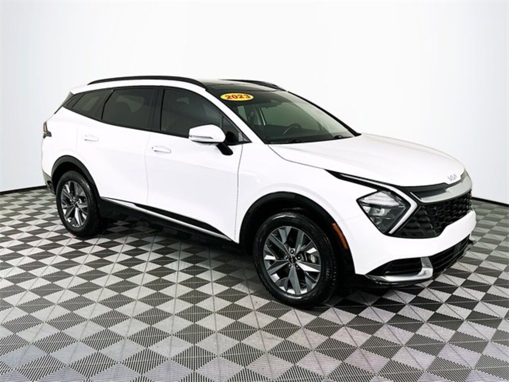 AWD, 4-Wheel Disc Brakes, 8 Speakers, ABS brakes, Air Conditioning, Alloy wheels, AM/FM radio: SiriusXM, Apple CarPlay & Android Auto, Auto High-beam Headlights, Auto-dimming Rear-View mirror, Automatic temperature control, Axle Ratio: 3.648, Brake assist, Bumpers: body-color, Cargo Mat, Cargo Net Hybrid w/Audio, Carpeted Floor Mats, Compass, Delay-off headlights, Driver door bin, Driver vanity mirror, Dual front impact airbags, Dual front side impact airbags, Electronic Stability Control, Emergency communication system, Four wheel independent suspension, Front anti-roll bar, Front Bucket Seats, Front Center Armrest, Front dual zone A/C, Front reading lights, Fully automatic headlights, Garage door transmitter: HomeLink, harman/kardon® Speakers, Heated door mirrors, Heated Front Bucket Seats, Heated front seats, Heated steering wheel, Illuminated entry, Leather Shift Knob, Leather steering wheel, Leatherette Seat Trim, Low tire pressure warning, Memory seat, Navigation System, Occupant sensing airbag, Outside temperature display, Overhead airbag, Overhead console, Panic alarm, Passenger door bin, Passenger vanity mirror, Power door mirrors, Power driver seat, Power Liftgate, Power moonroof, Power steering, Power windows, Radio: AM/FM/HD Audio System, Rain sensing wipers, Rear anti-roll bar, Rear reading lights, Rear seat center armrest, Rear window defroster, Rear window wiper, Remote keyless entry, Security system, Speed control, Speed-sensing steering, Split folding rear seat, Spoiler, Steering wheel mounted audio controls, Tachometer, Telescoping steering wheel, Tilt steering wheel, Traction control, Trip computer, Turn signal indicator mirrors, Variably intermittent wipers, and Wheels: 18 Matte Gray Alloy. Clean CARFAX. CARFAX One-Owner. Recent Arrival! Glacial White Pearl Kia 2023 Sportage SX