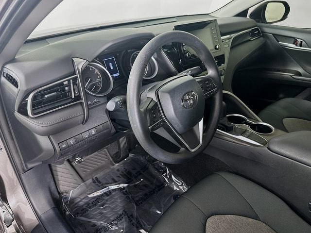 Black Cloth, 4-Wheel Disc Brakes, 6 Speakers, 7.5J x 17 Alloy Wheels, ABS brakes, Air Conditioning, Alloy wheels, AM/FM radio: SiriusXM, Apple CarPlay/Android Auto, Auto High-beam Headlights, Automatic temperature control, Brake assist, Bumpers: body-color, Delay-off headlights, Driver door bin, Driver vanity mirror, Dual front impact airbags, Dual front side impact airbags, Electronic Stability Control, Emergency communication system: Safety Connect (1-year trial), Exterior Parking Camera Rear, Fabric Seat Trim, Four wheel independent suspension, Front anti-roll bar, Front Bucket Seats, Front Center Armrest, Front dual zone A/C, Front reading lights, Fully automatic headlights, Illuminated entry, Knee airbag, Low tire pressure warning, Occupant sensing airbag, Outside temperature display, Overhead airbag, Overhead console, Panic alarm, Passenger door bin, Passenger vanity mirror, Power door mirrors, Power driver seat, Power steering, Power windows, Radio data system, Radio: Audio, Rear anti-roll bar, Rear seat center armrest, Rear side impact airbag, Rear window defroster, Remote keyless entry, Security system, Speed control, Speed-sensing steering, Split folding rear seat, Steering wheel mounted audio controls, Tachometer, Telescoping steering wheel, Tilt steering wheel, Traction control, Trip computer, and Variably intermittent wipers. Clean CARFAX. CARFAX One-Owner. Predawn Gray Mica Toyota 2023 Camry LE